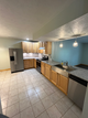 Large kitchen with an island/bar, tile backsplash, stainless appliances including garbage disposal and a walk in pantry. Sliding door off the kitchen to the patio.
